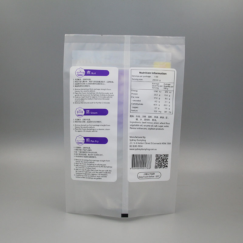 產品名稱:200g餃子洋蔥牛肉+啞光塑料復合冷凍+背封袋
