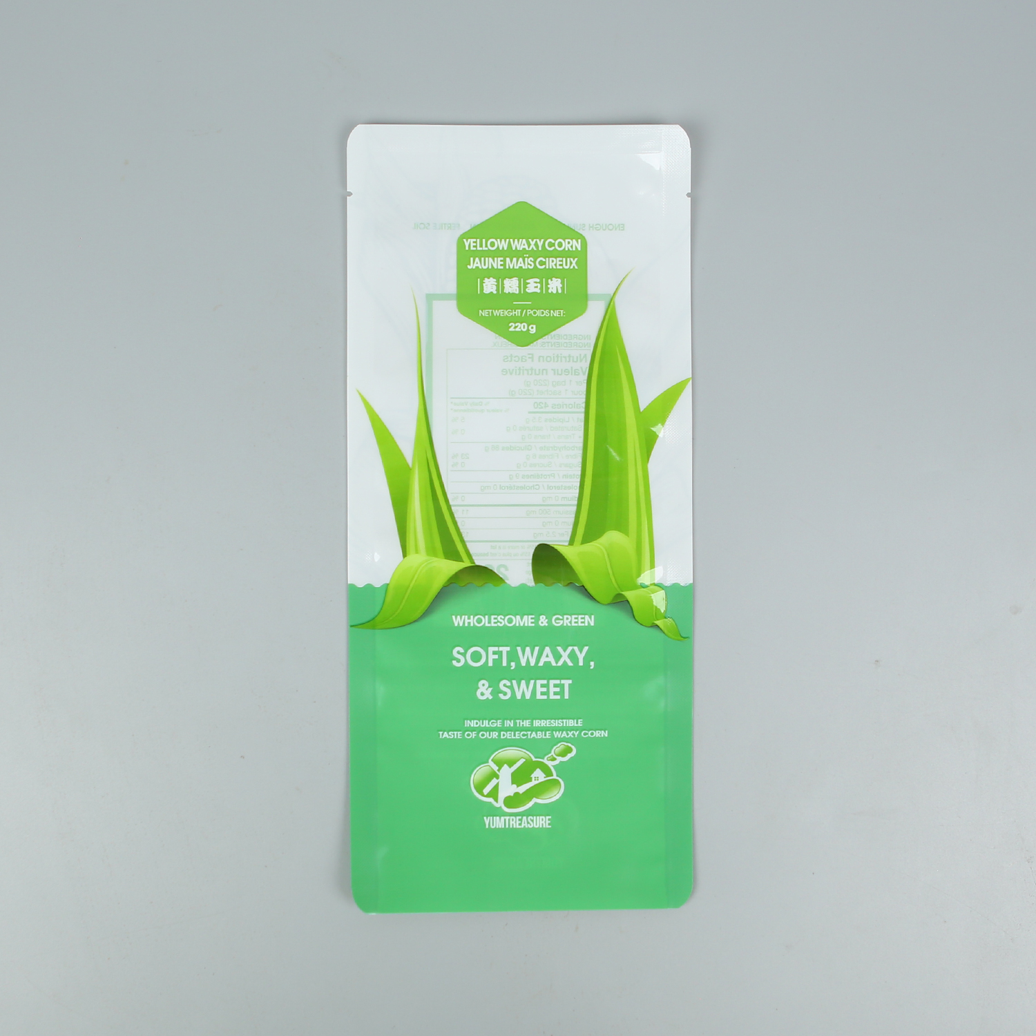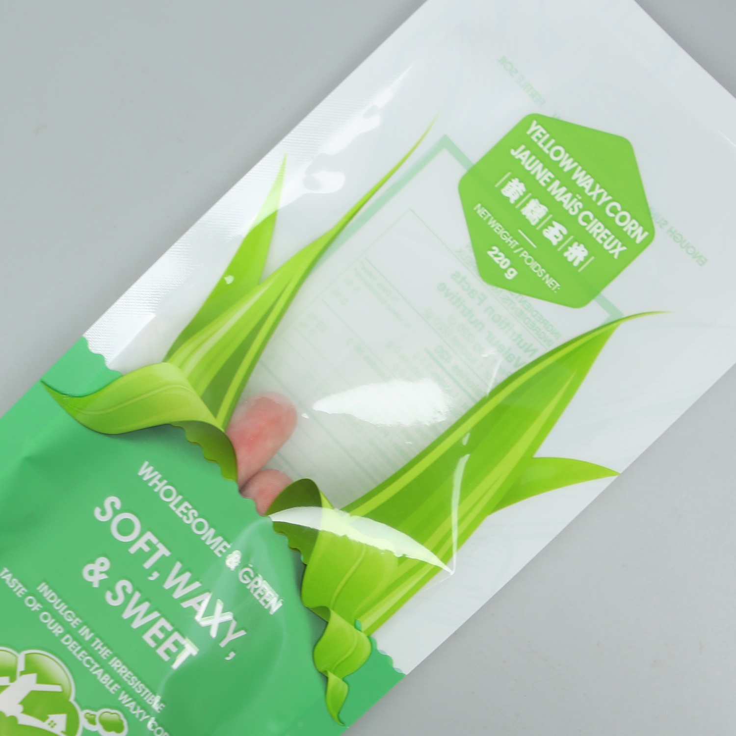 產品名稱:220g黃糯玉米+亮面塑料復合+三邊封
