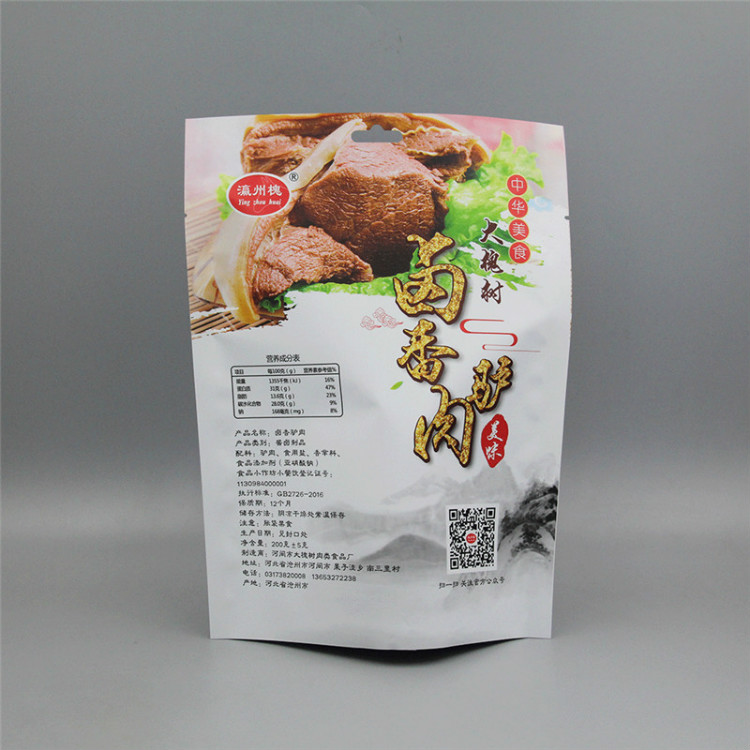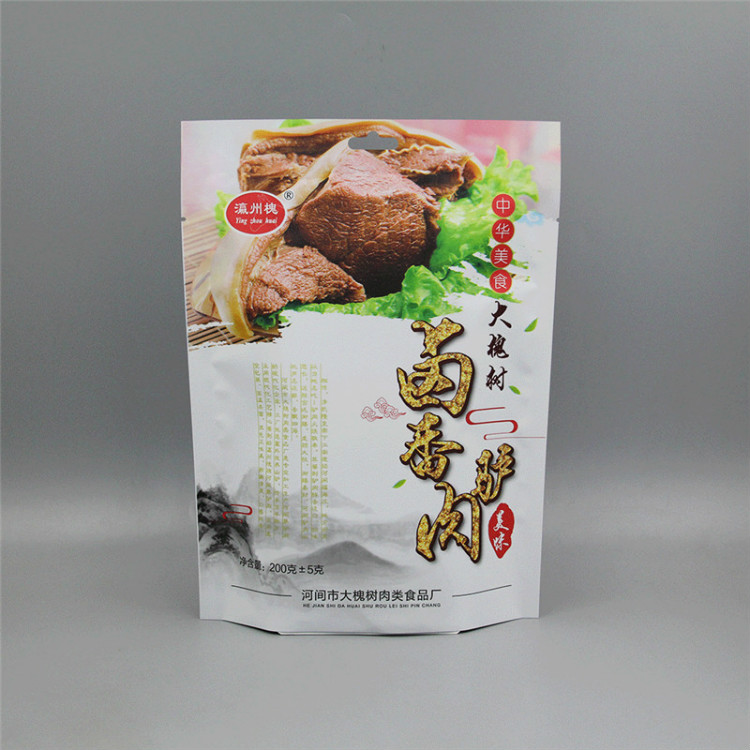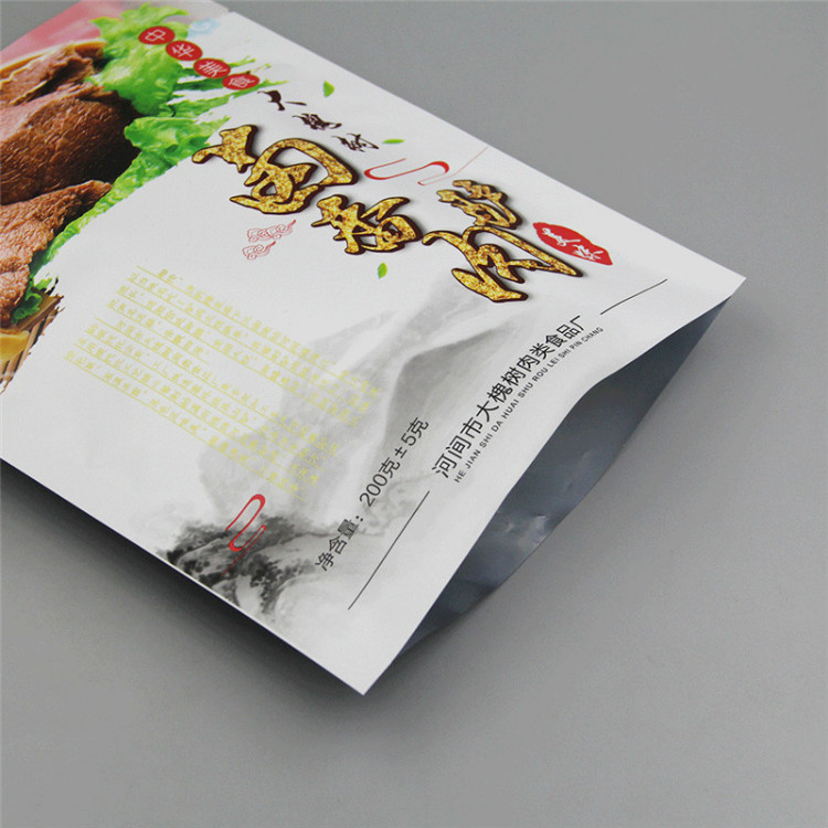 熟食包裝多需要進行高溫蒸煮,蒸煮袋多用三層材料復合而成,具有代表性的蒸煮袋結構是:外層為聚酯膜,作加強用;中層為鋁箔,作防光、防濕和防漏氣用;內層為聚烯烴膜(如聚丙烯膜),作熱合和接觸食品用。