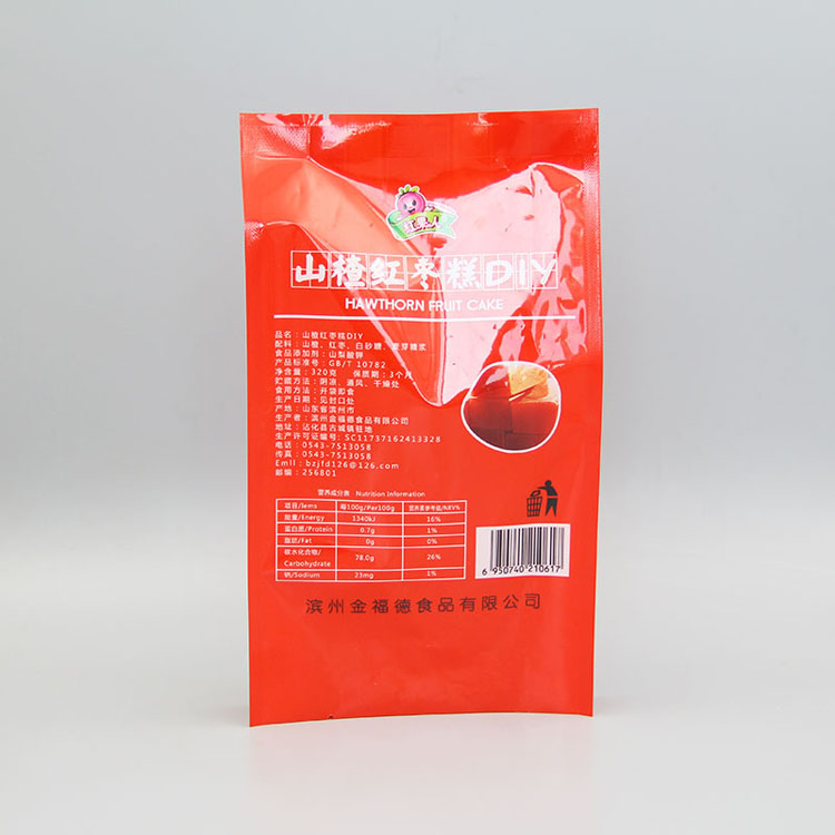 產品名稱:320g山楂紅棗糕+亮面塑料復合+四邊封包裝袋