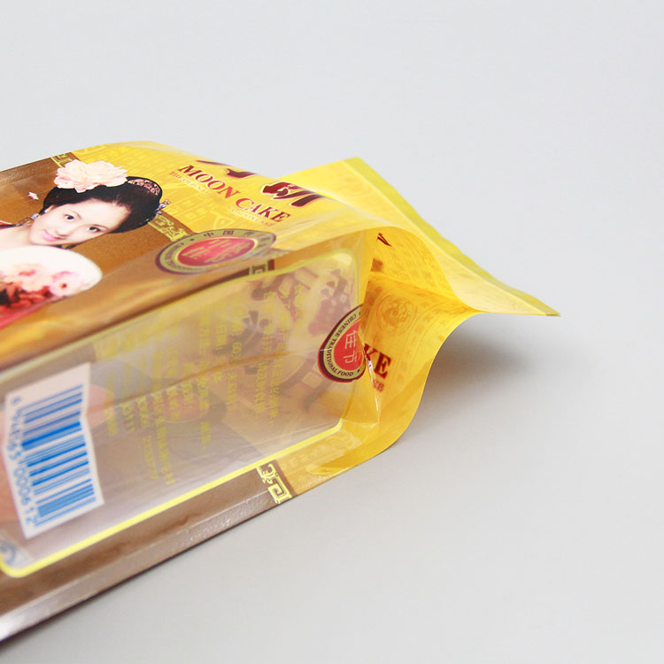 本產品為亮面塑料復合四邊封包裝袋,塑料包裝保持月餅風味與品質,防止月餅氧化變質。四邊封每條邊都經過均勻的熱封,成袋后的產品密封性較好。巨人包裝選擇環保油墨,復合技術先進,能夠有效減少油墨、膠水帶來的危害,保證月餅的安全性。