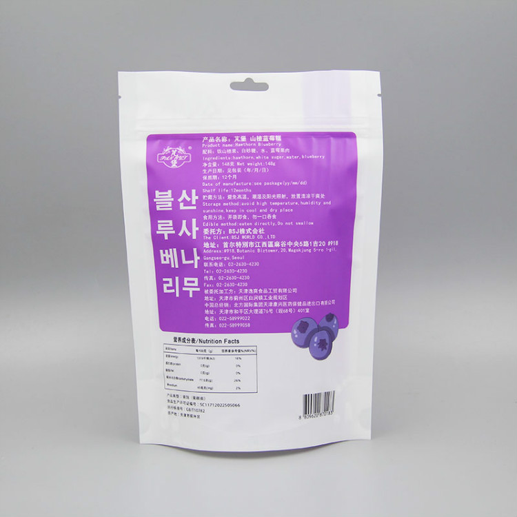 產(chǎn)品名稱:148g山楂藍(lán)莓糕+啞光塑料復(fù)合+自立拉鏈袋